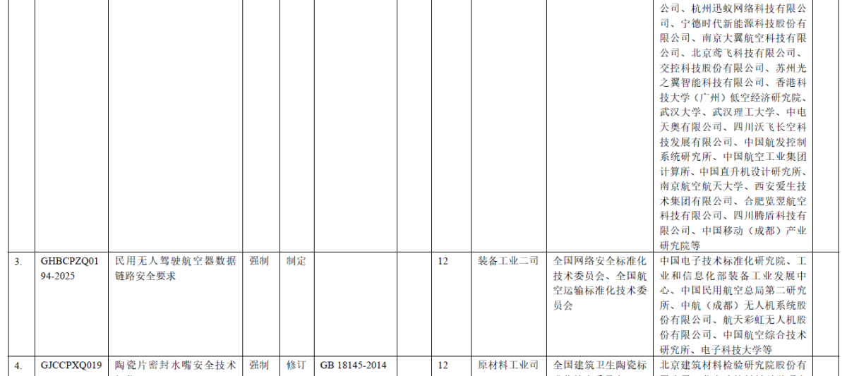 工信部2025年第八批强制性国家标准制修订计划(征求意见稿)公示。其中包括申请立项的